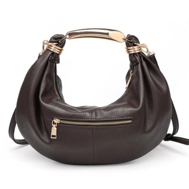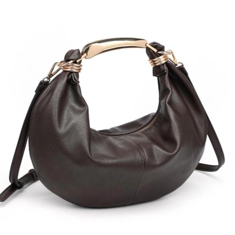 Carrie Vegan Leather Crossbody Dark Espresso Brown Gold