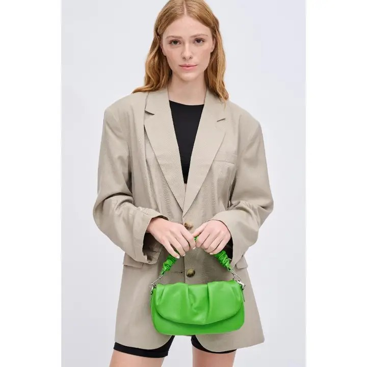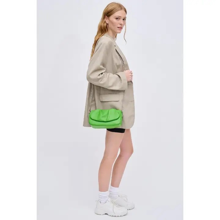 Meadow Ruched Top Handle Vegan Leather Chain Strap Crossbody Citron Green