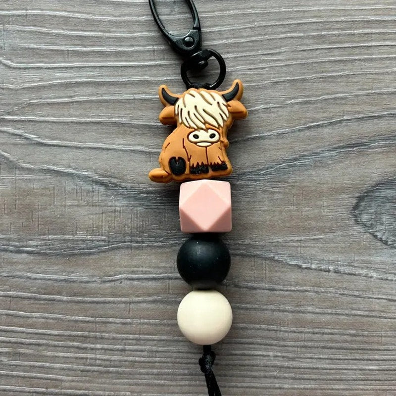 This unique accessory features soft, durable silicone beads in earthy tones, perfectly capturing the spirit of the countryside. The keychain is adorned with an adorable Highland cow charm, detailed with its signature shaggy coat and gentle expression, making it a delightful nod to rural life. The beads are designed for comfort and durability, ensuring they withstand daily use without losing their color or shape. Whether you're attaching it to your keys, bag, or even using it as a zipper pull, this keychain is as practical as it is stylish. The secure keyring and easy-to-use clasp make it simple to add or remove keys as needed. Perfect for animal lovers, farmers, or anyone with a soft spot for these iconic creatures, the Highland Cow Silicone Beaded Keychain is a fun and functional way to carry a piece of the countryside with you. It also makes a thoughtful gift.