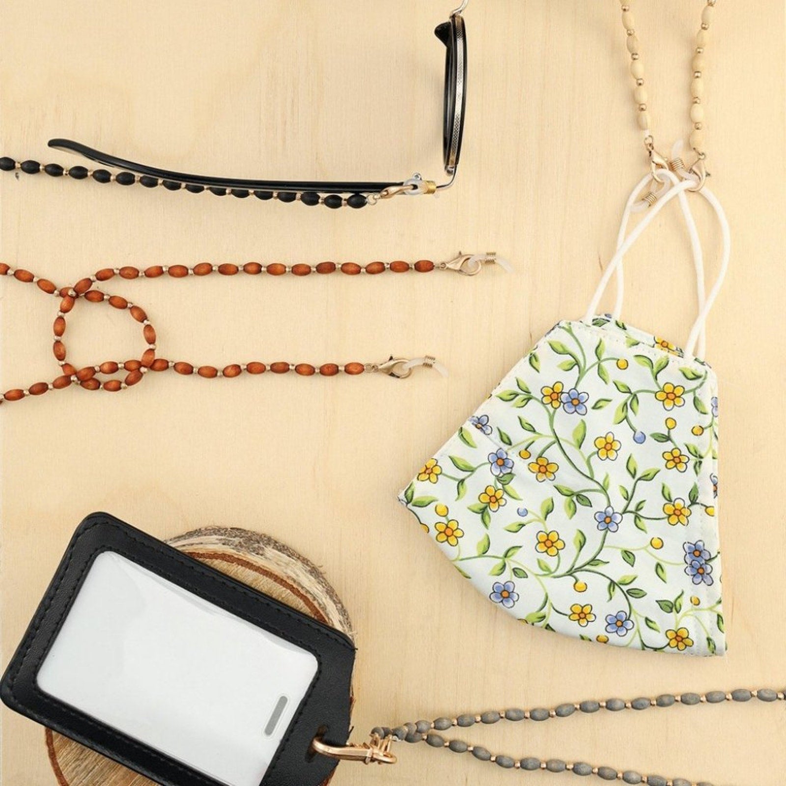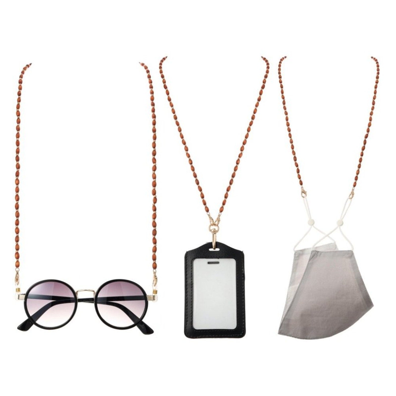 Brown Wood Beaded Glasse Mask Lanyard Chain Necklace