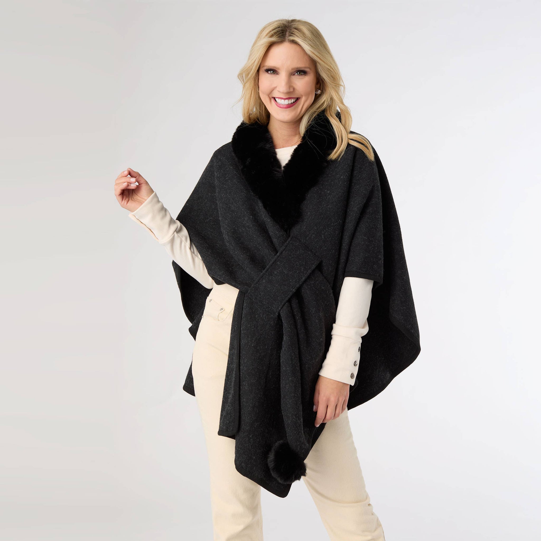 Rae Pull Through Wrap with Faux Fur Camel Brown