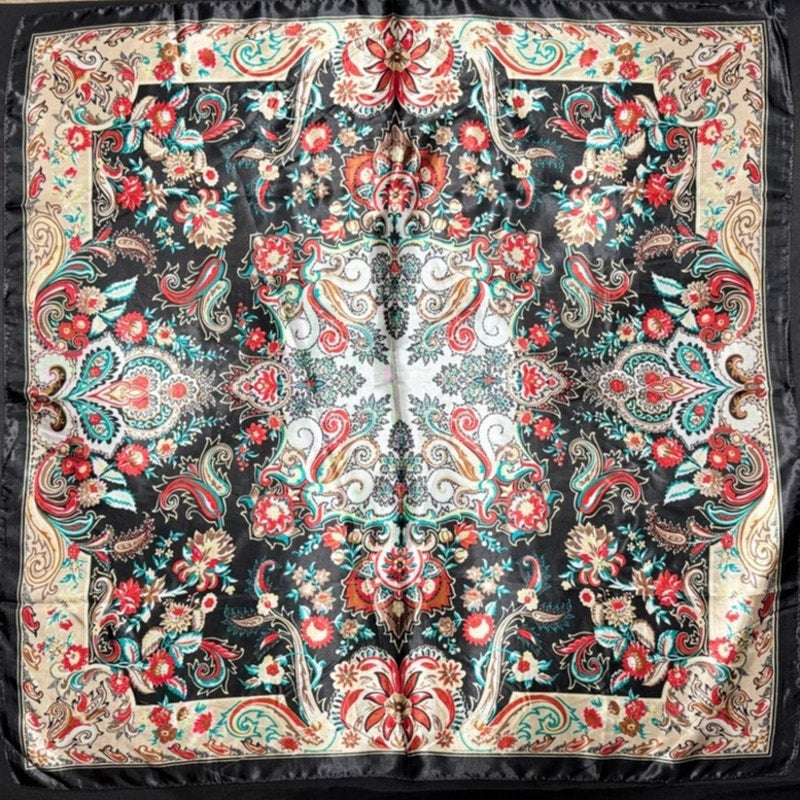 Black Gold Red Floral Printed Western Southwestern Wild Rag Scarf Accent