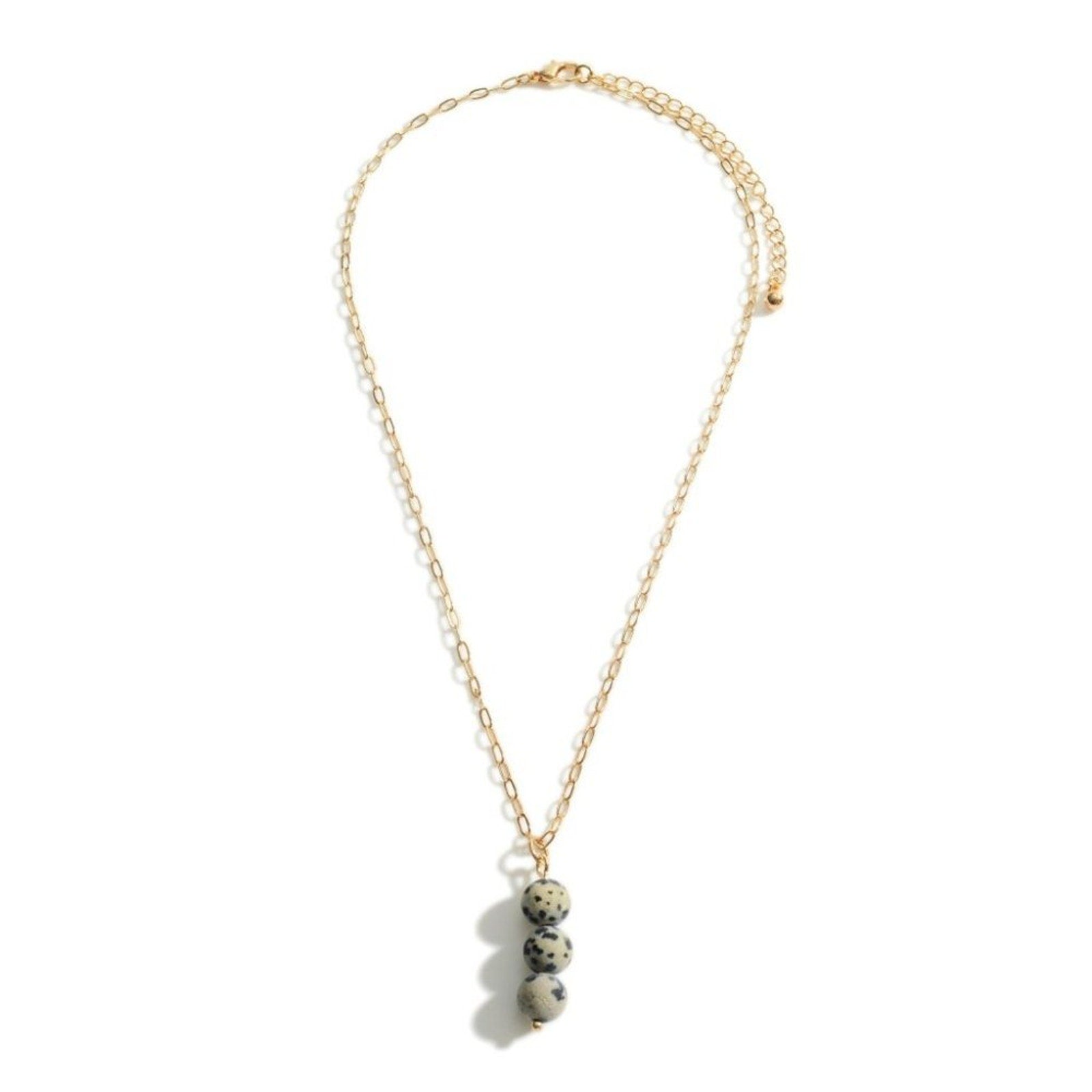 Dalmation Jasper 3 Bead Gold Link Necklace