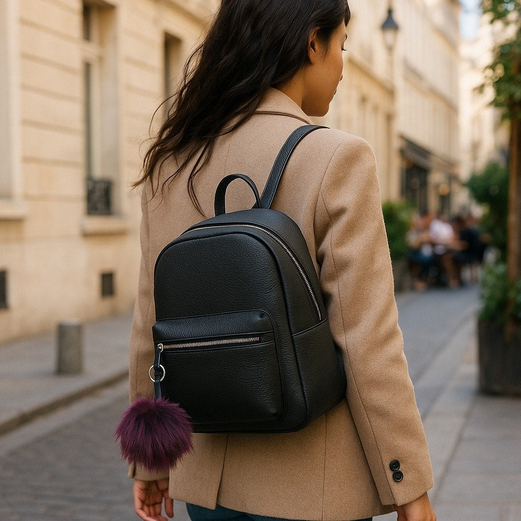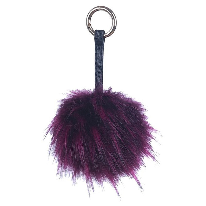 Plum Purple Faux Fur Pom Pom Key Chain Keyring Bag Charm