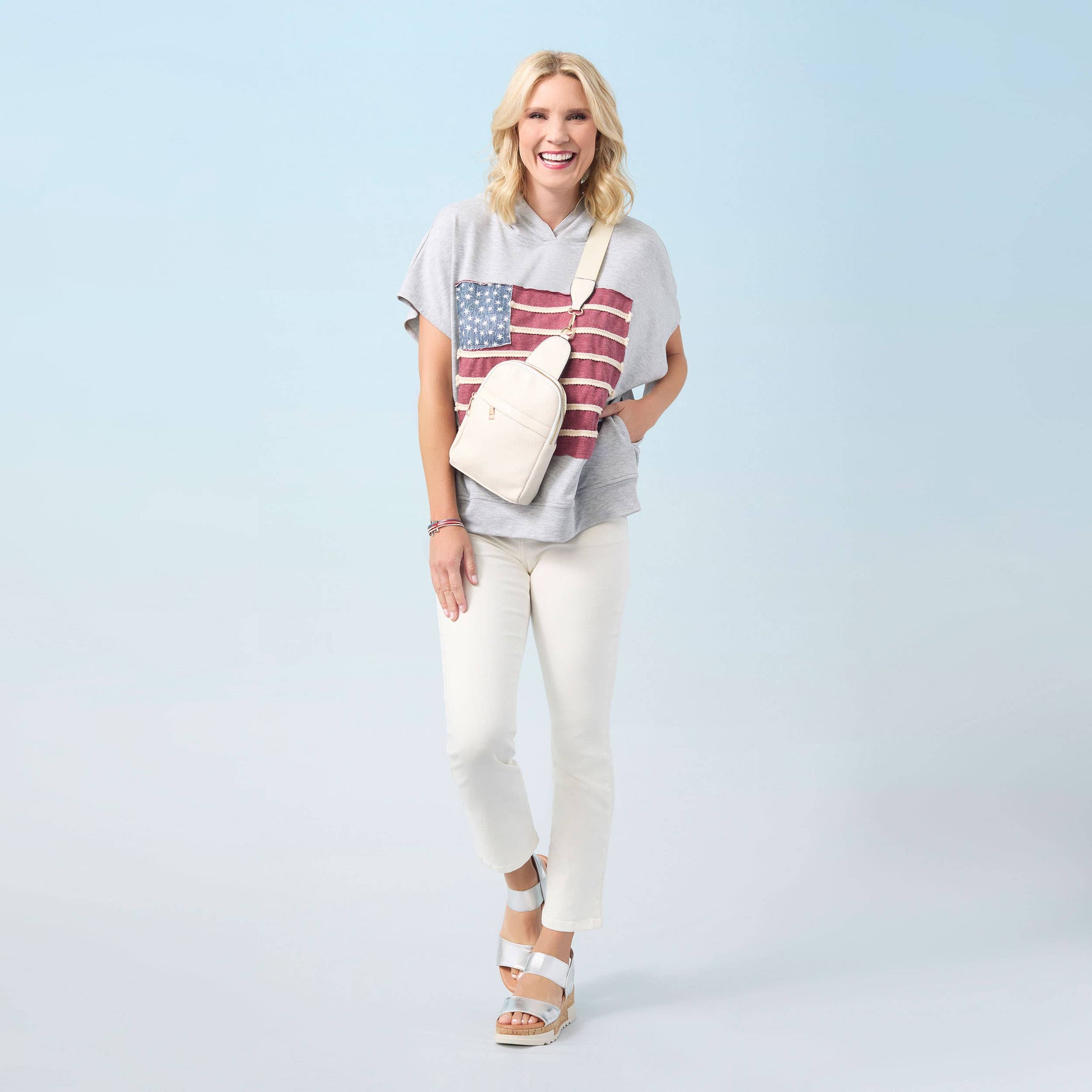 Vintage Look Americana Patriotic Hooded Top Red White Blue