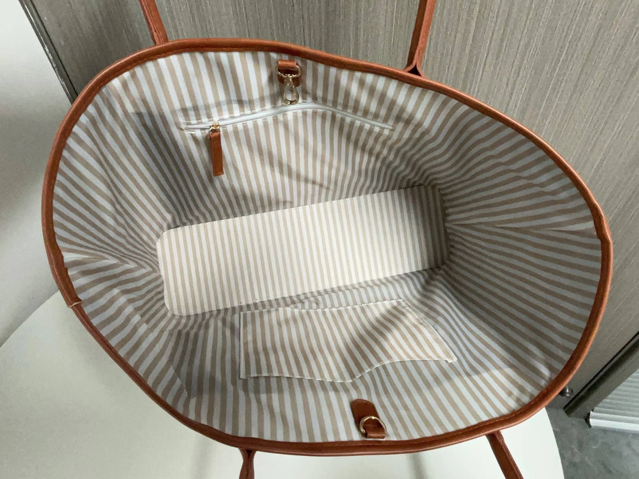 Carryall Shopper Tote Bag Beige Brown