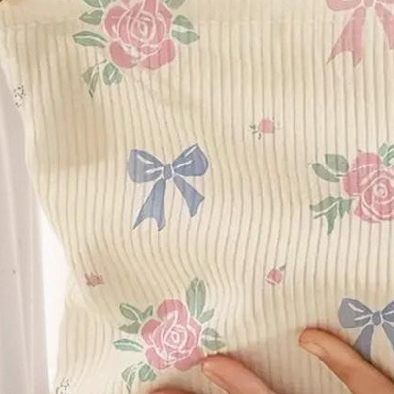 Cream Pink Blue Corduroy Coquette Roses Bows Cosmetic Travel Zipper Bag Pouch