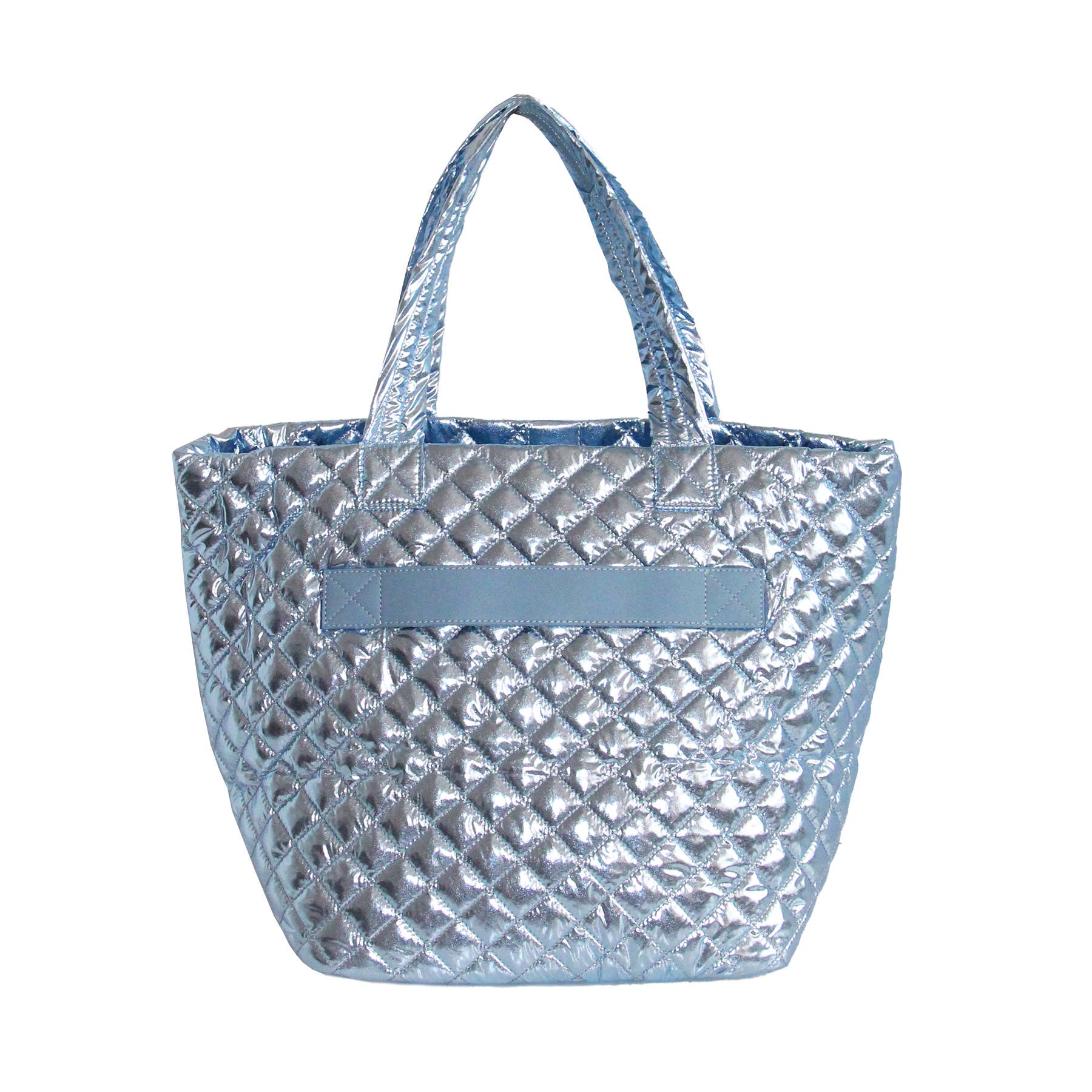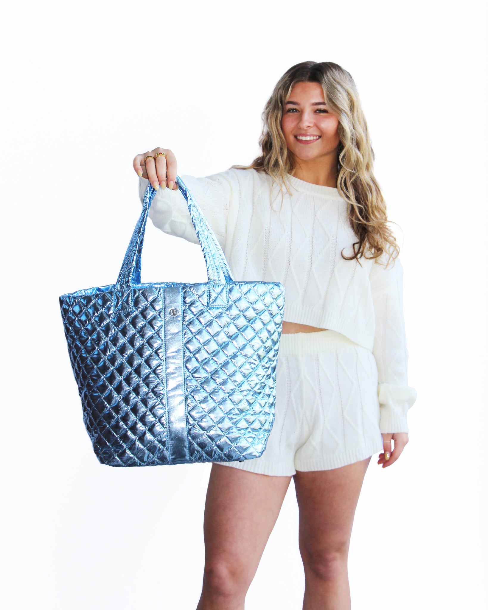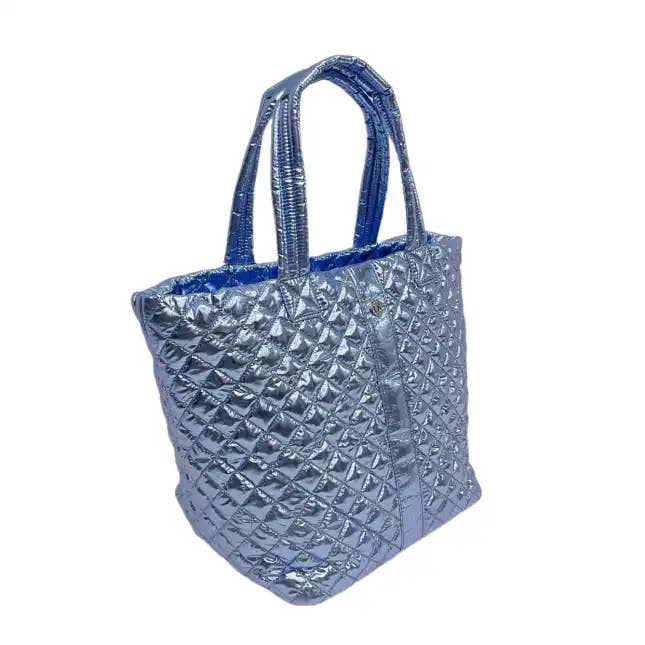 The Debra Diamond Quilted Nylon Tote Bag Ice Blue