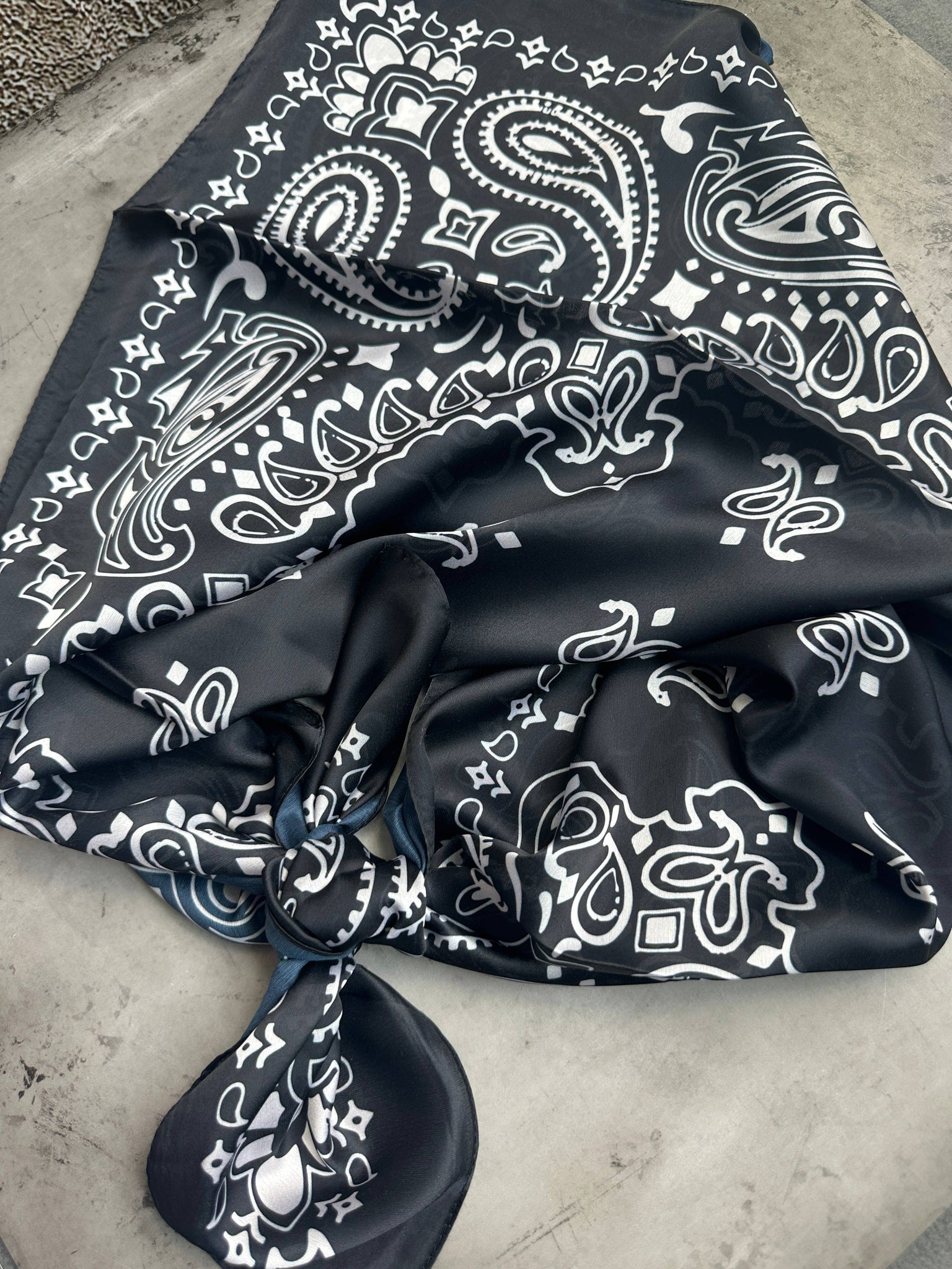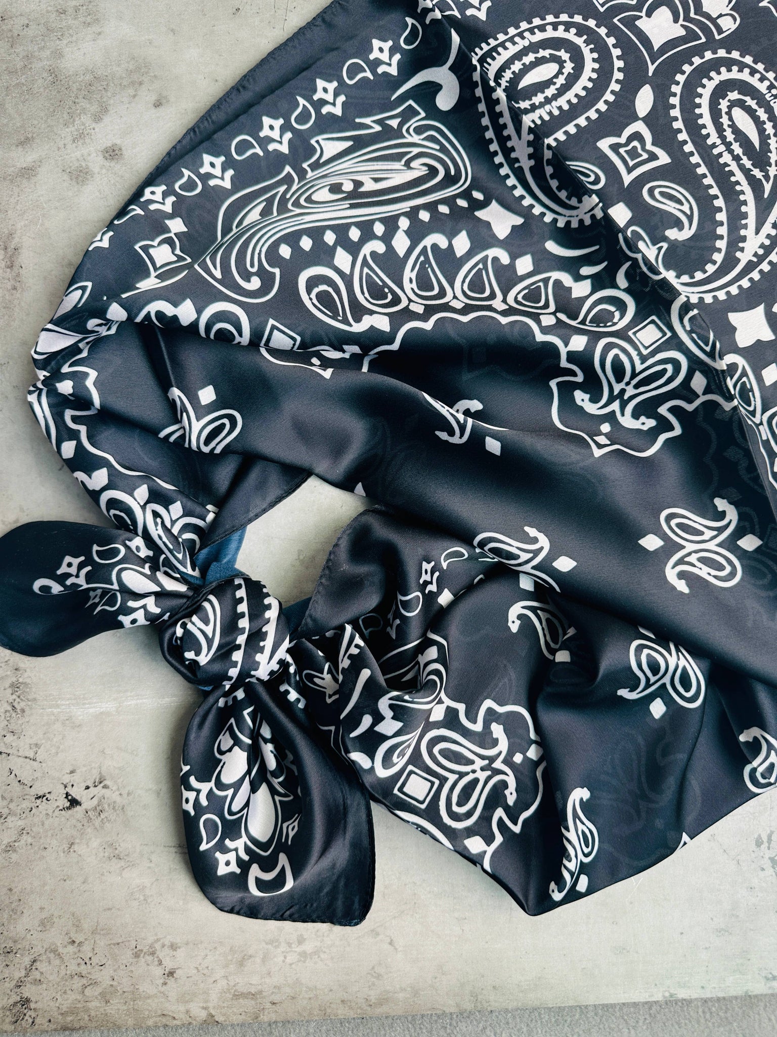 Black Bandana Paisley Western Wild Rag Scarf Silk Blend