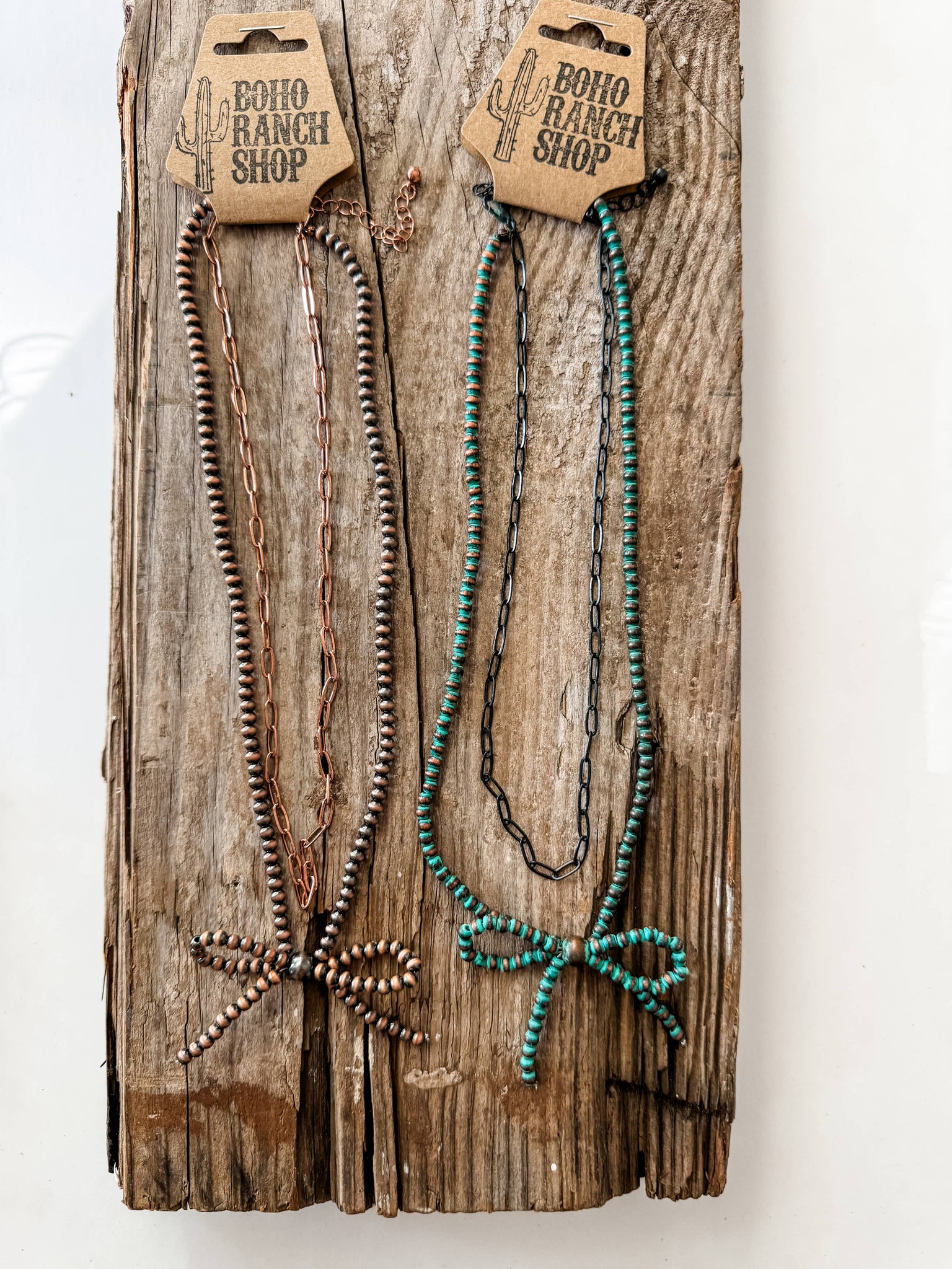 Navajo Style Pearl Bow Coquette Layered Necklace Copper