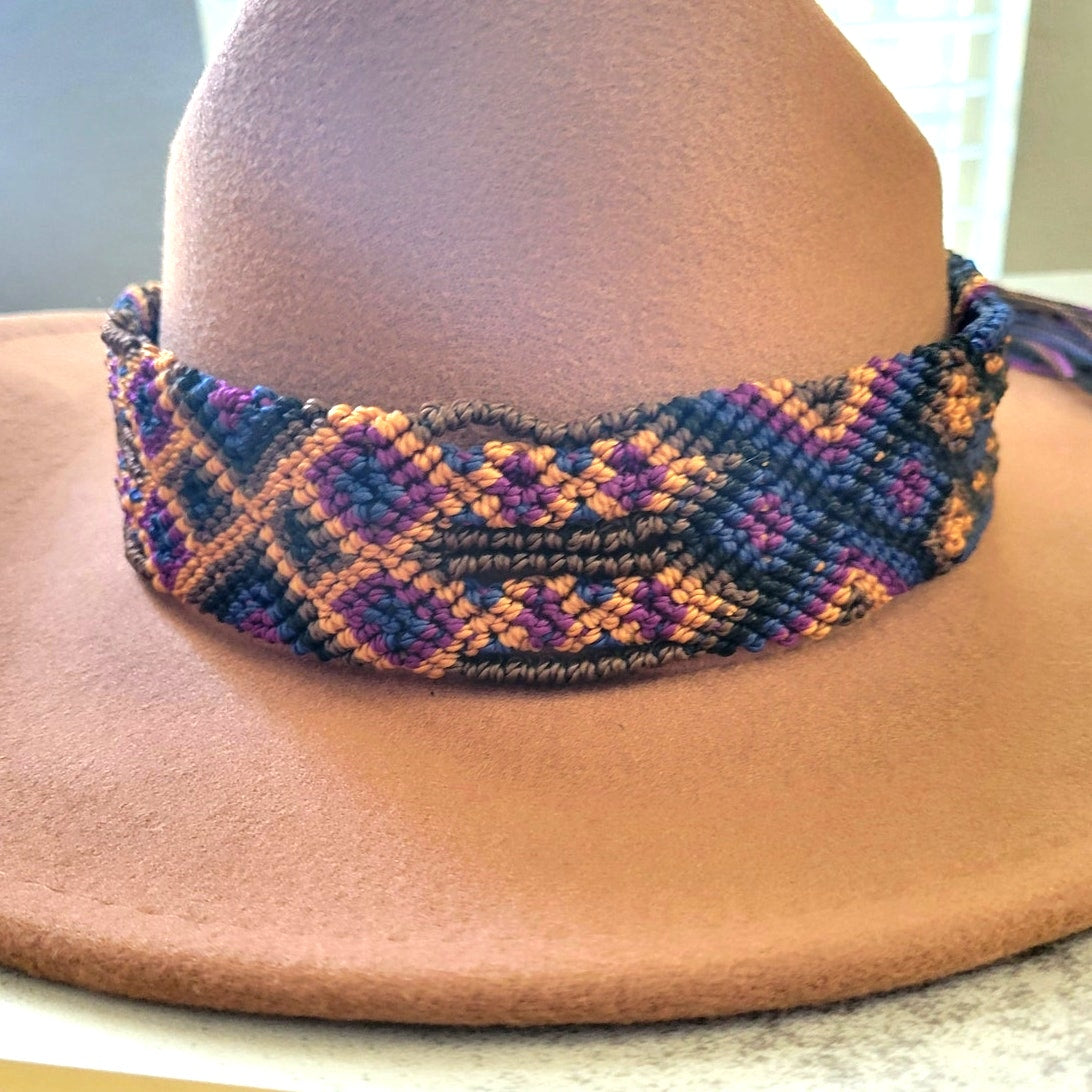 Navy Purple Tan Brown Woven Braided Western Aztec Adjustable Hat Band