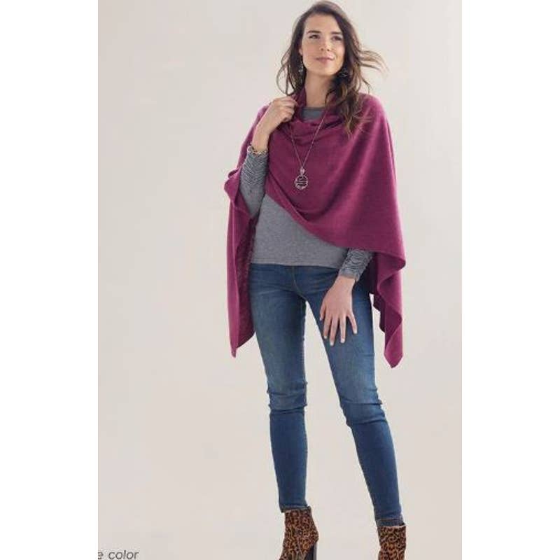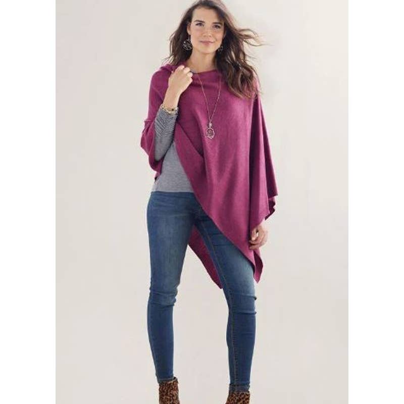 This flattering lightweight poncho with elegant draping. Soft Acrylic.