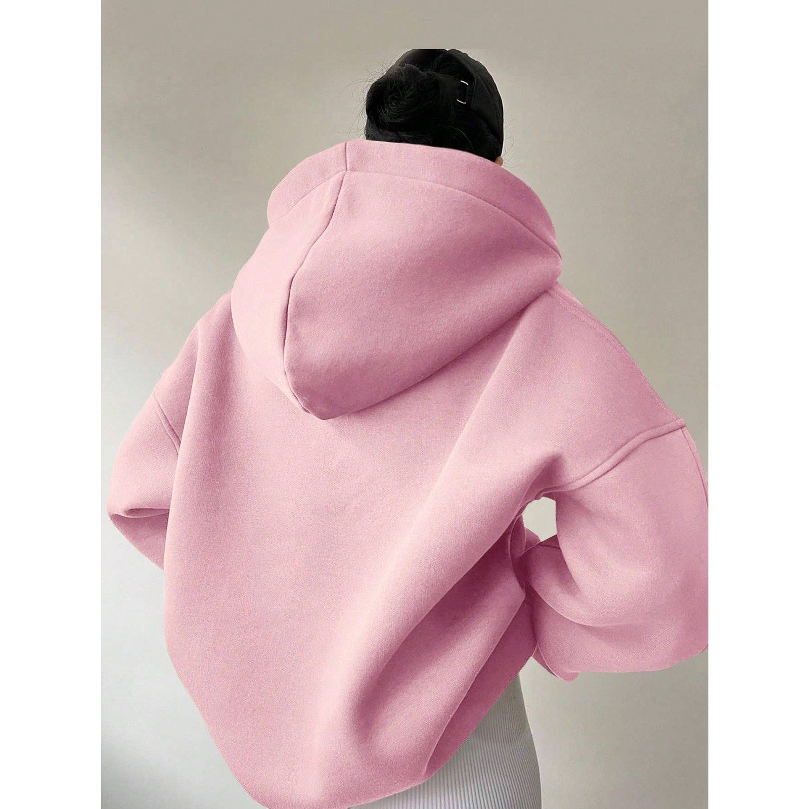 Solid Color Long Sleeve Slouchy Hooded Hoodie Sweatshirt Light Pink