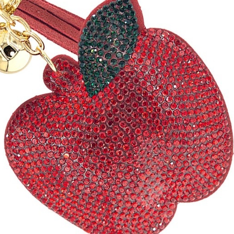 Red Bling Rhinestone Studded Apple Tassel Keychain Bag Charm