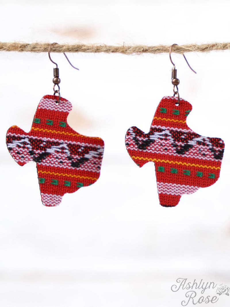 Red White Black Serape Texas Western Woven Dangle Earrings