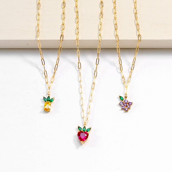 Dainty Gold Chain Necklace Featuring Grape Charm- Approximately 16" L- Extender 3" L