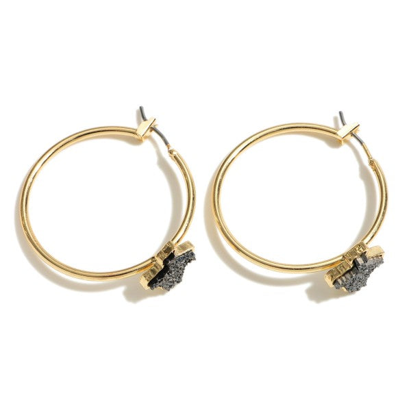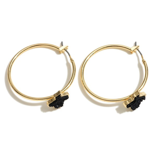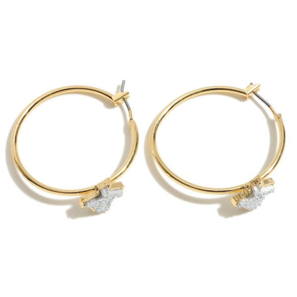 Texas State Druzy Hoop Earrings in Gold.- Approximately 1.25" in Diameter