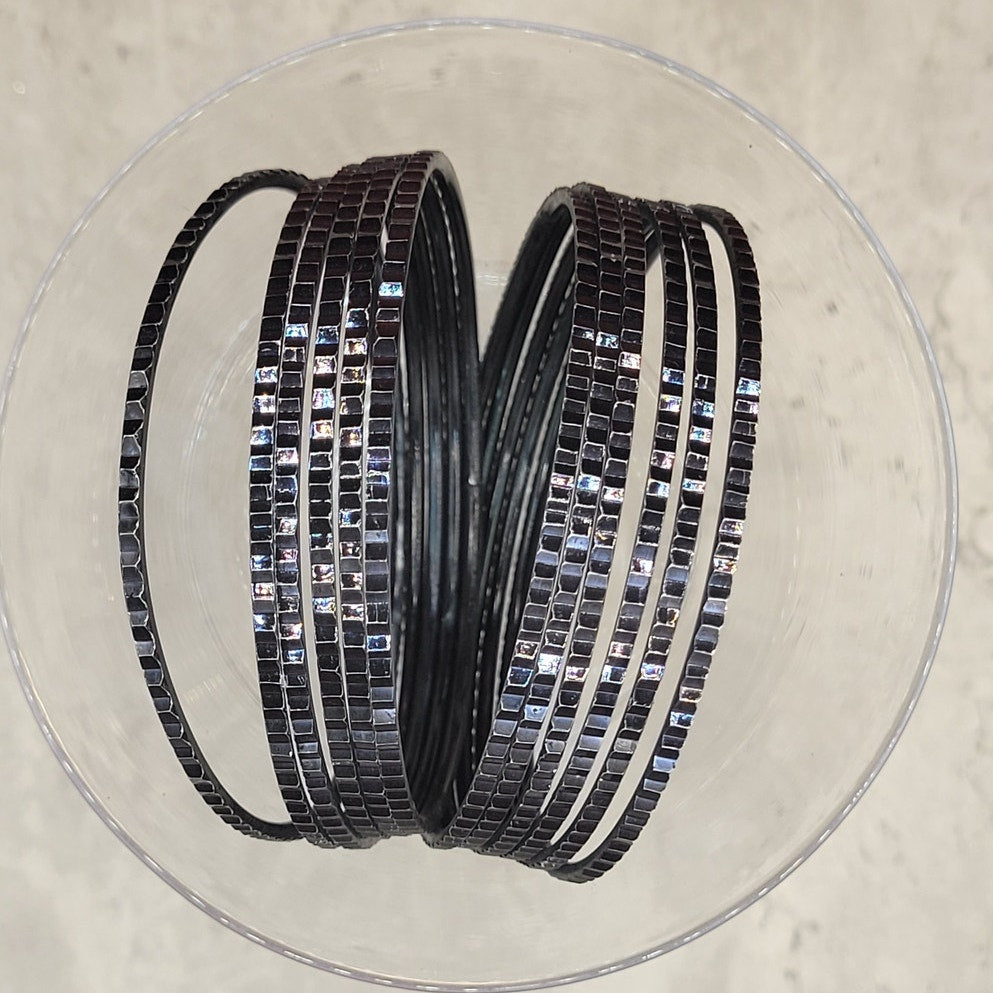 Black Ridged Thin Metal Bangles Metallics Stack of 6