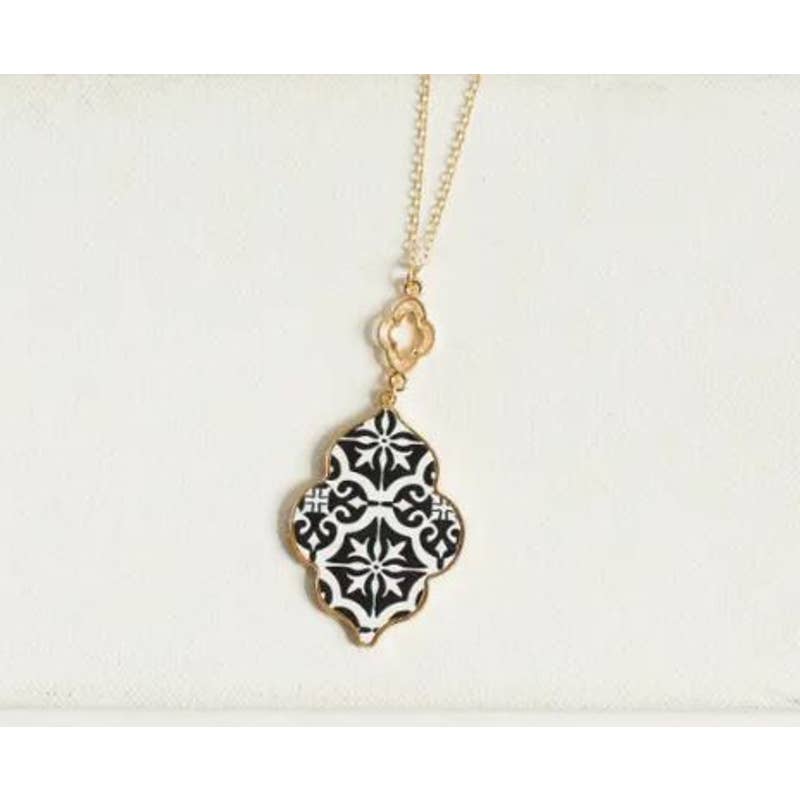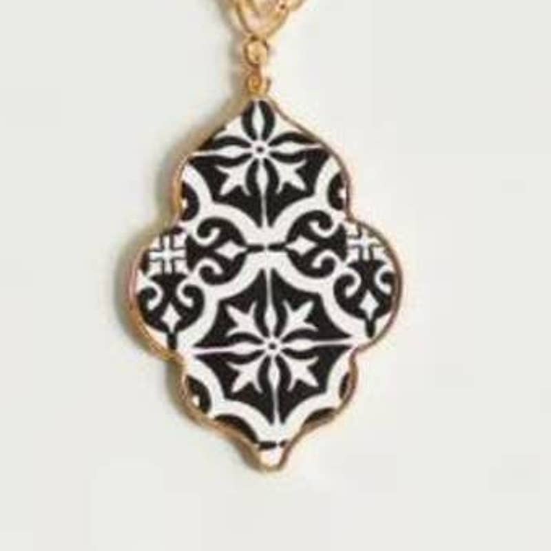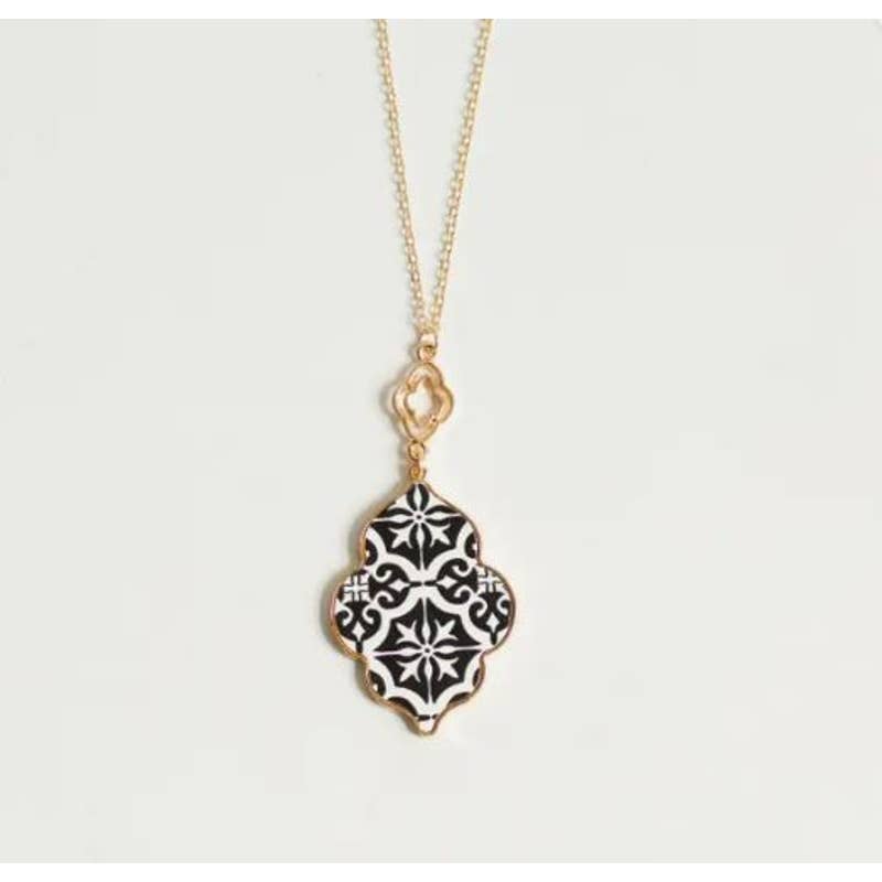 Black & White Mosaic Long Pendant Statement Necklace