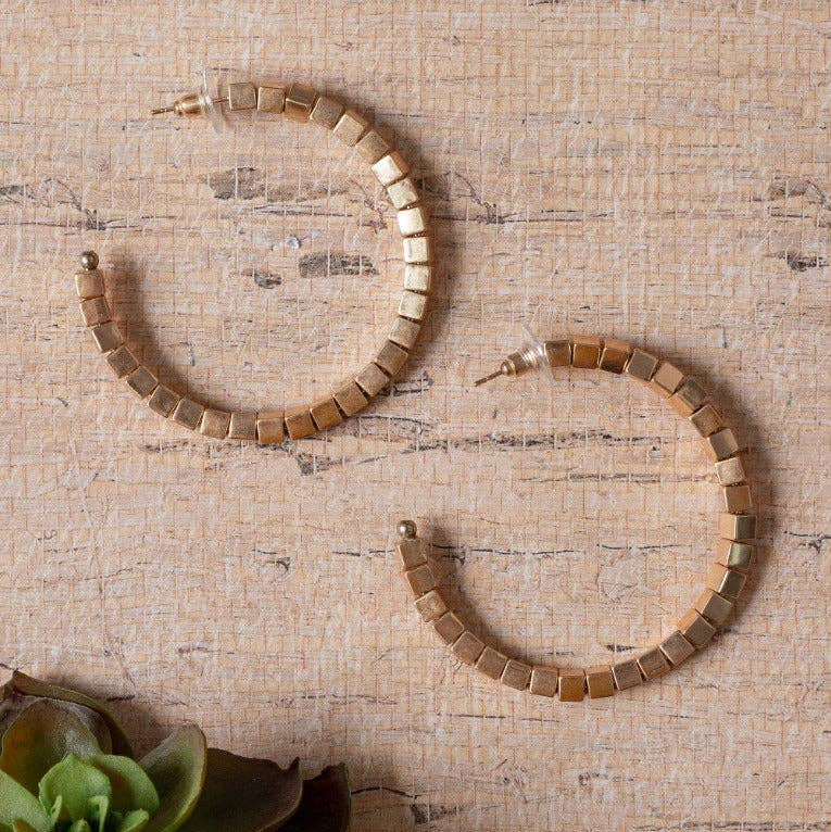 Blame It On My Roots Square Beaded Hoop Earrings