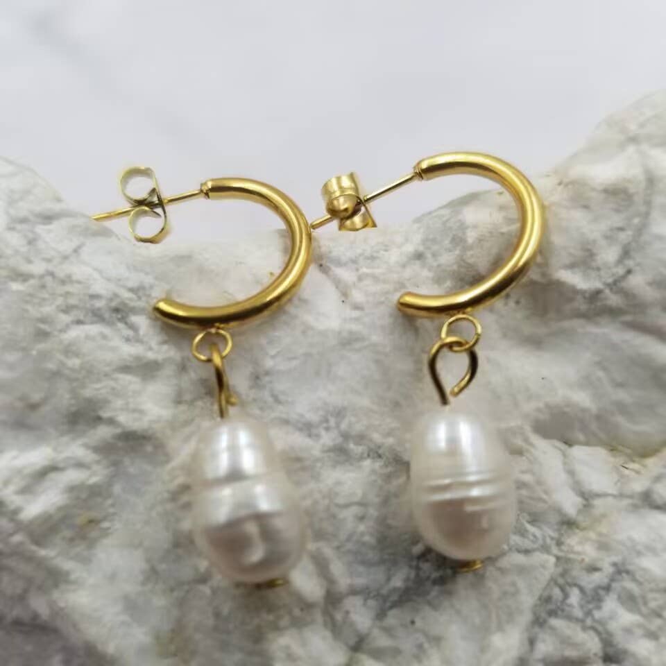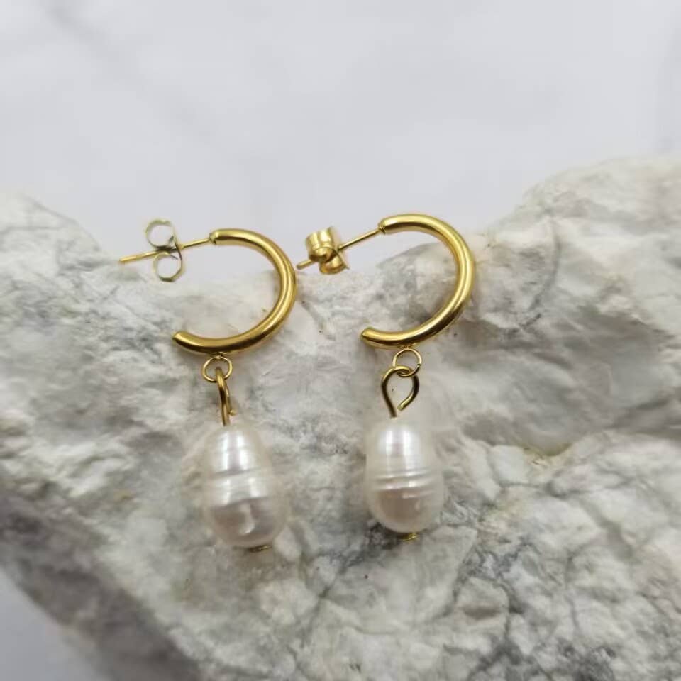 Dangle Baroque Freshwater Pearl Charm Hoop Earrings