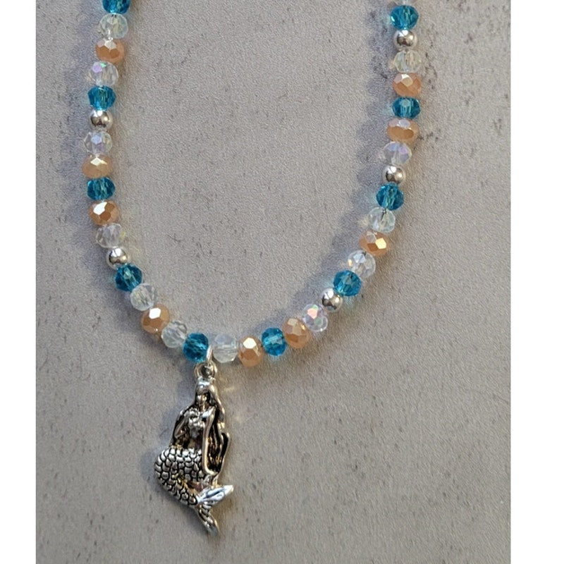 Turquoise, White, Peach, Silver beads with Silver Mermaid charm