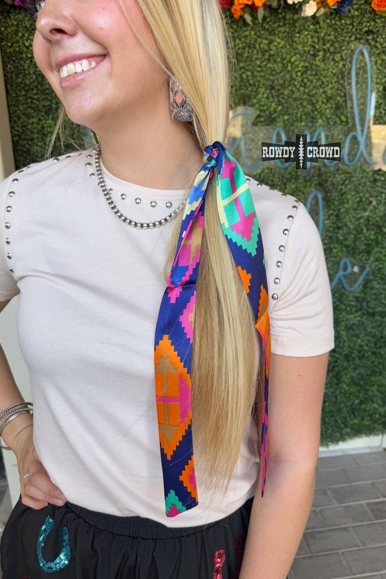 The Chico Scarf is the best way to stand out in a crowd with it's bright purple, pink and purple with gold and blue aztec prints scattered. Wear it as a head band, around your wrist, on your purse, around your neck-- the possibilities are endless! Get ready to unleash your wild, retro side with this scarf.