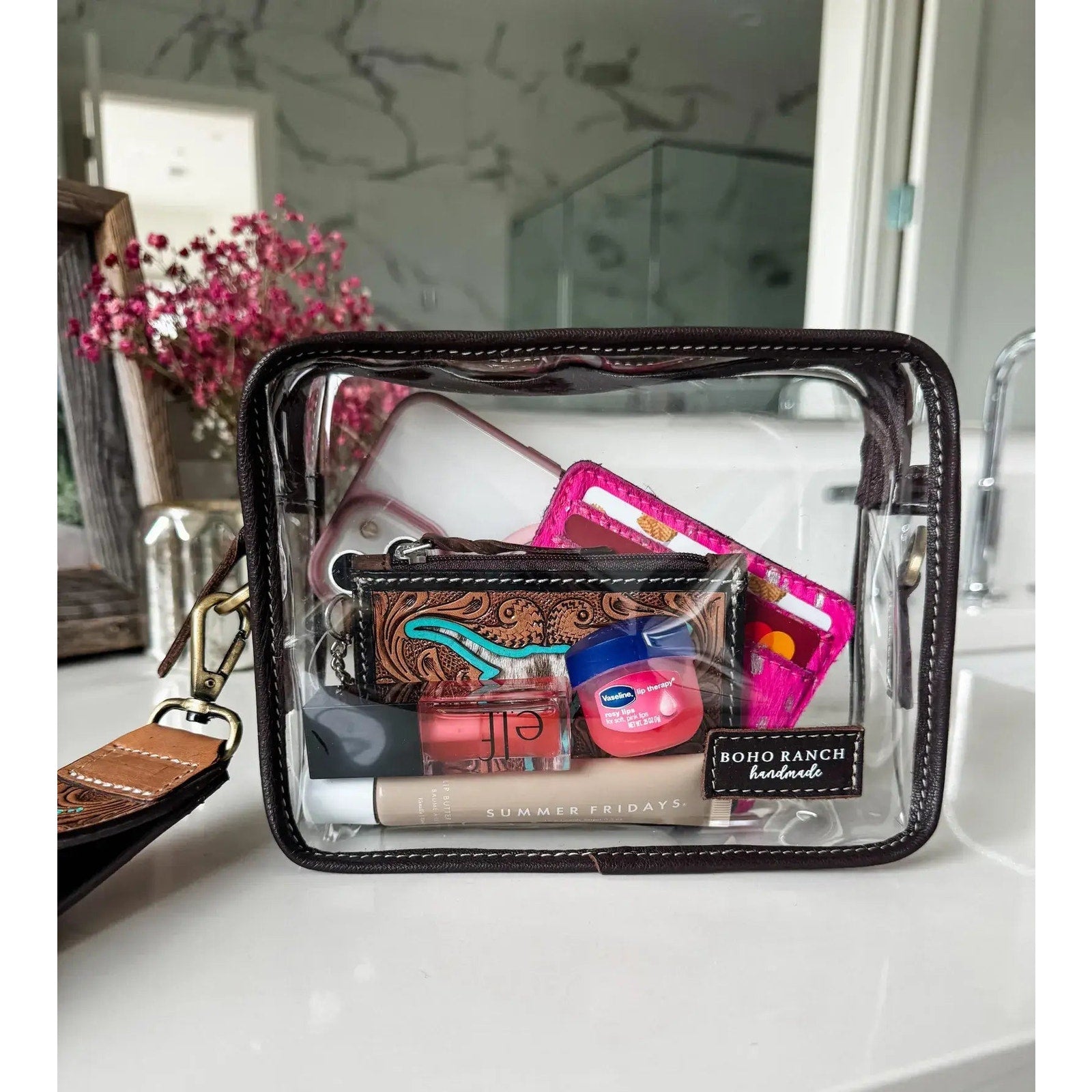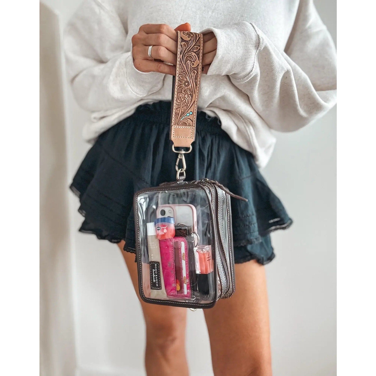 Darla Clear Wristlet Hand Tooled Strap Western Purse Tan Festival Concerts Stadiums