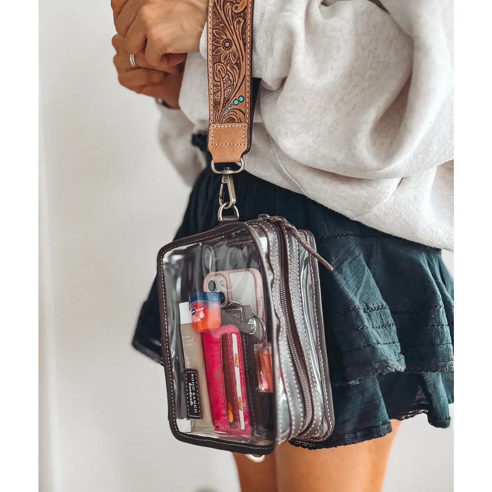 Darla Clear Wristlet Tooled Strap Western Purse Tan Festival Concerts Stadiums