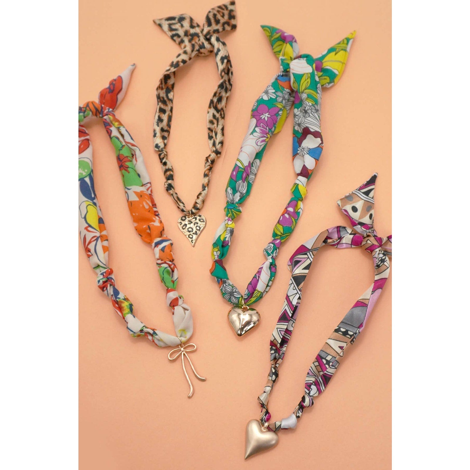 Handmade Scarf Necklace - Heart is a crafted with care, this soft fabric scarf doubles as a stylish necklace, featuring a delicate heart charm that adds a sweet, personal touch. Lightweight and versatile, it is perfect for layering.