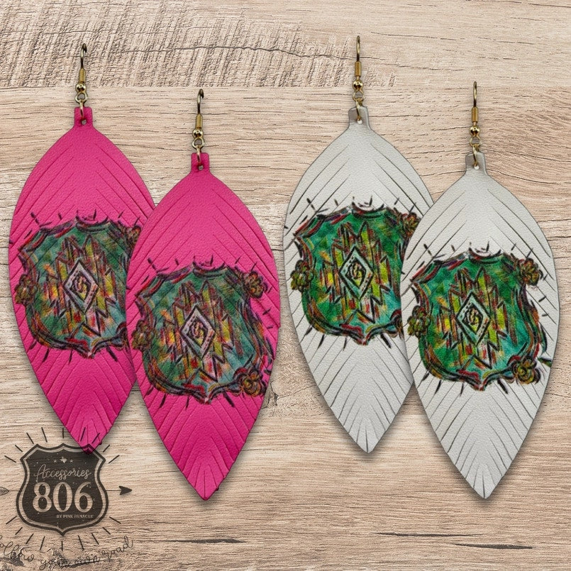 Aztec Print Feather Earring Pink