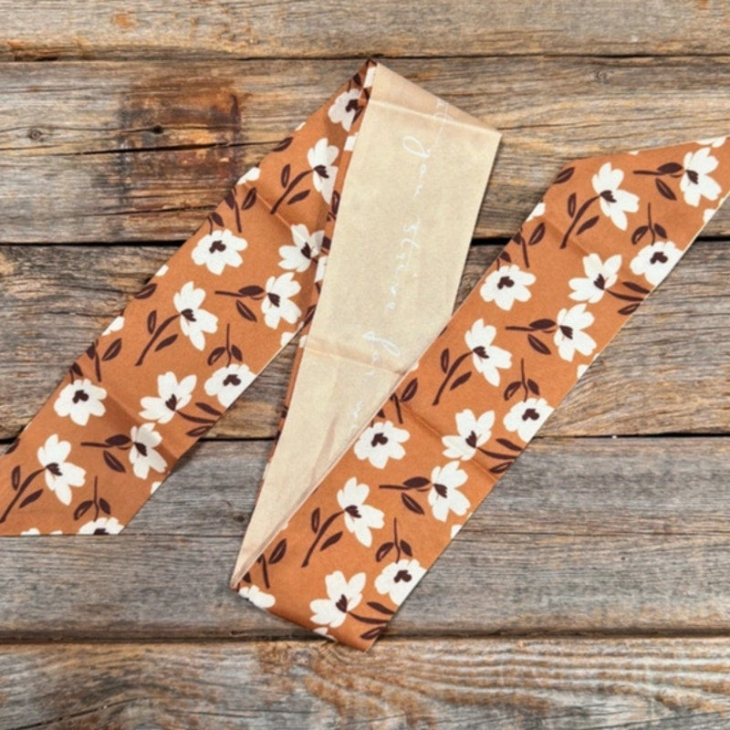 Brown and Cream Floral Western Skinny Cowgirl Mini Wild Rag Scarf Necktie