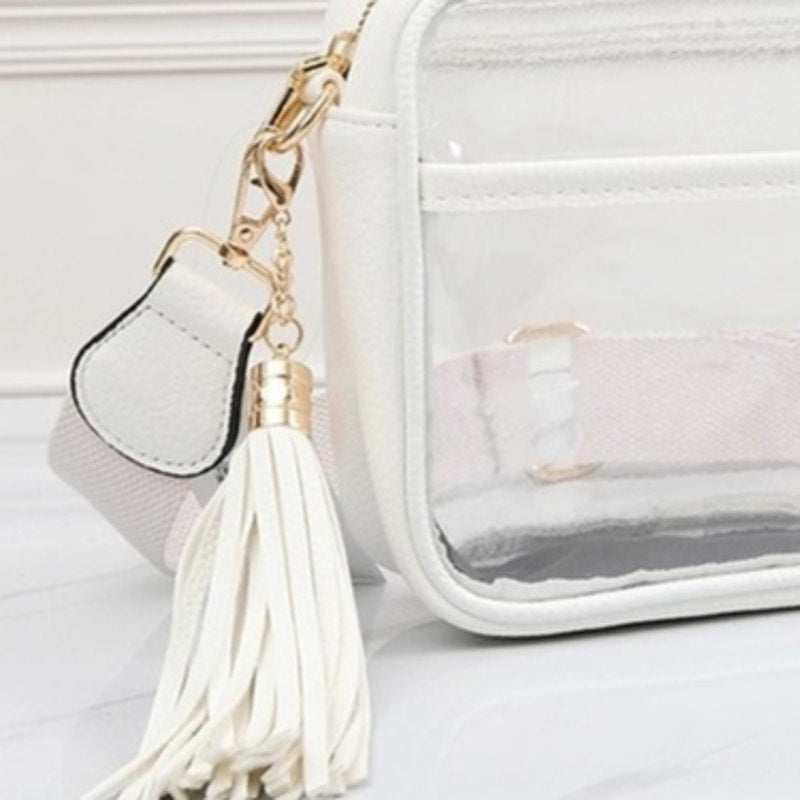 Game Day Stadium Rectangle Tassel Clear Crossbody Bag White