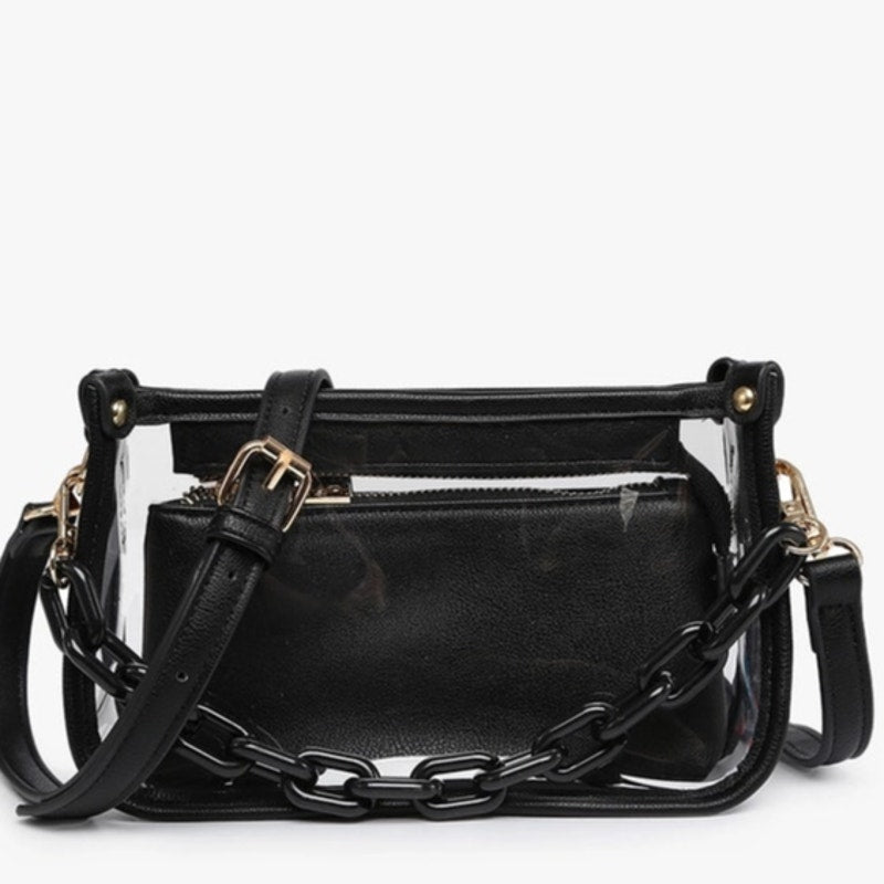 Jessica Clear Duo Crossbody Strap Chain Strap Black