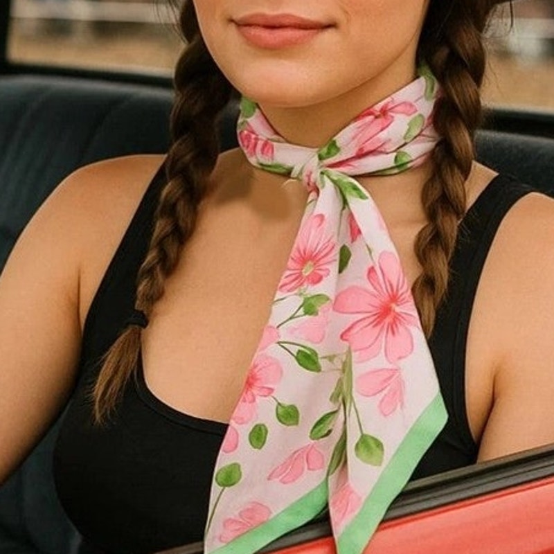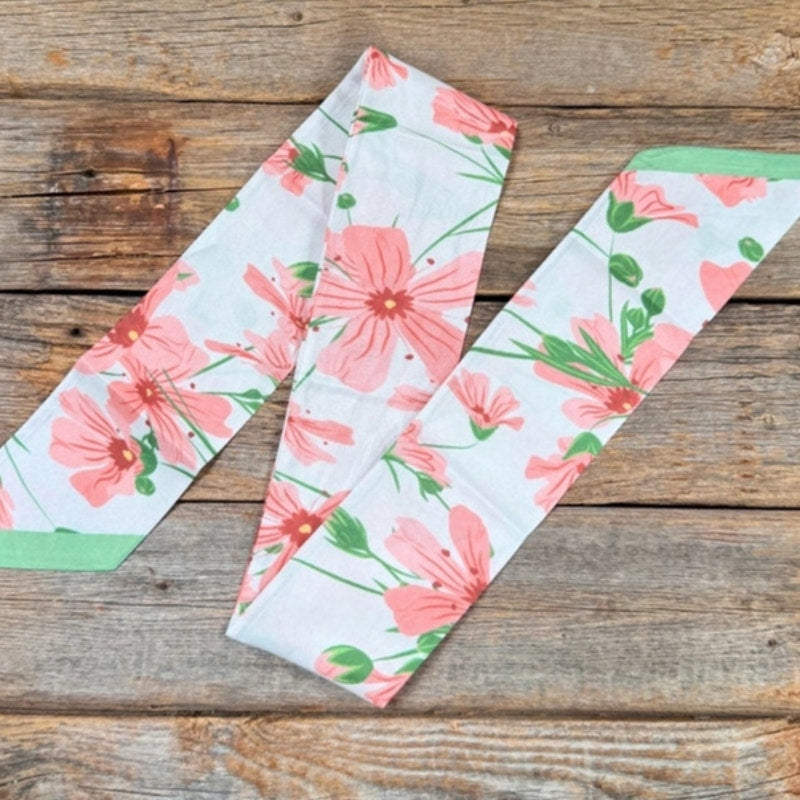 Pink Green Floral Western Skinny Cowgirl Mini Wild Rag Scarf Necktie