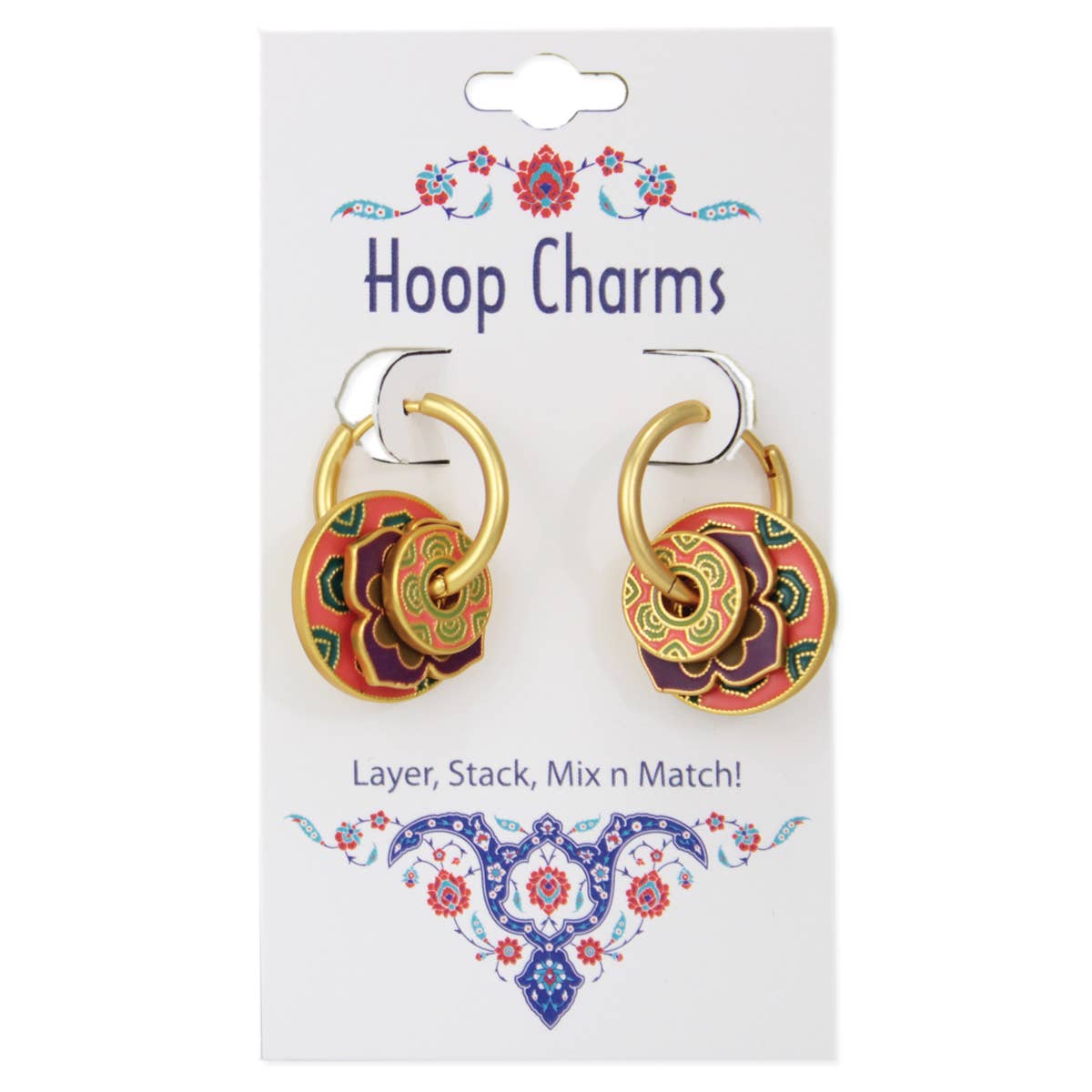 Pink Purple Gold Stacking Hoop Charm Earrings