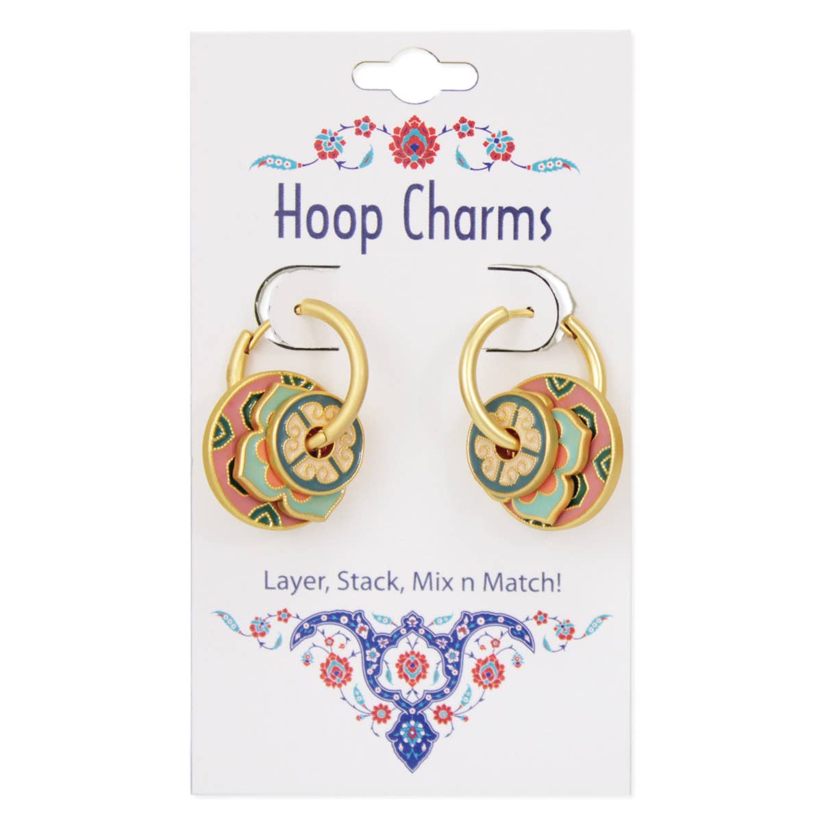 Pink Turquoise Gold Stacking Hoop Charm Earrings