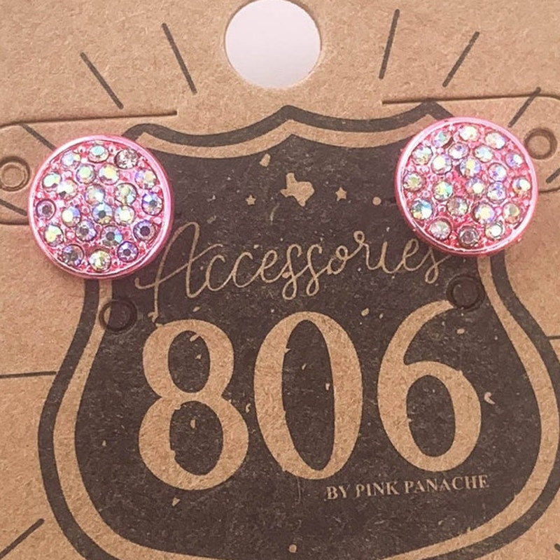 Round Bling Rhinestone Crystal Stud Earring Pink