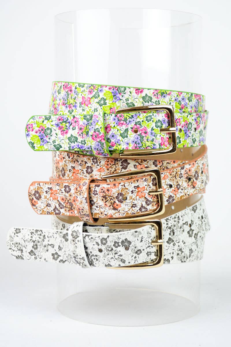 Boho Chic Floral Vegan Leather Adjustable Belt Green