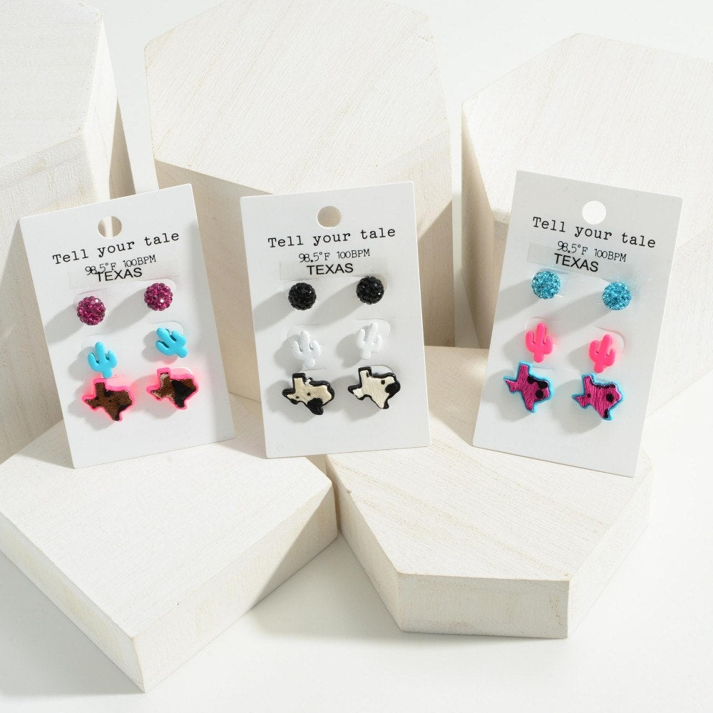 Set of Three Texas Stud Earrings Turquoise and Hot Pink