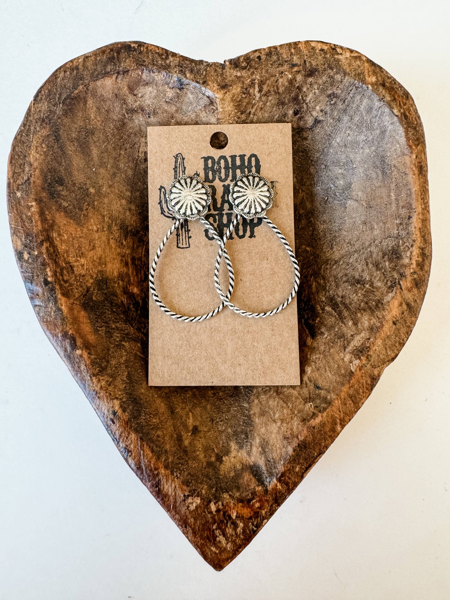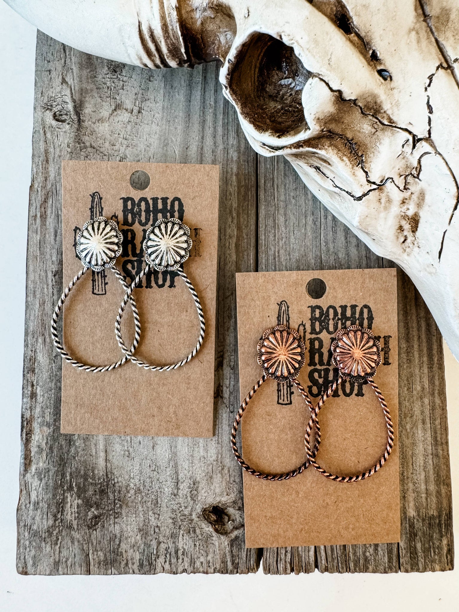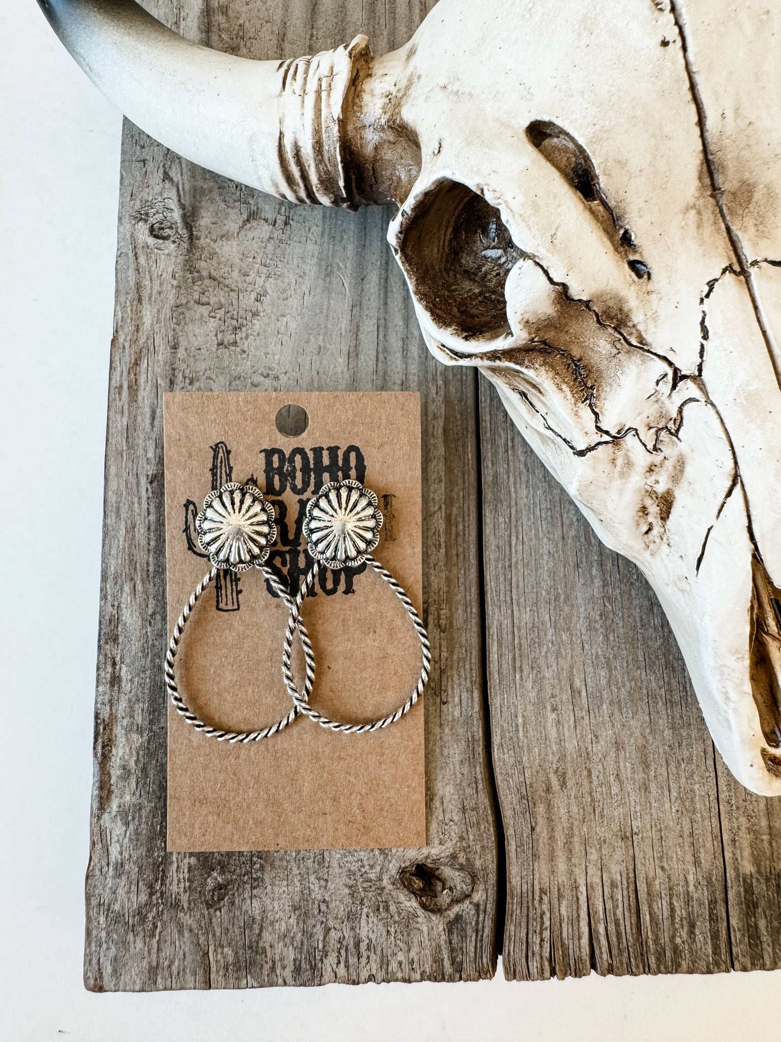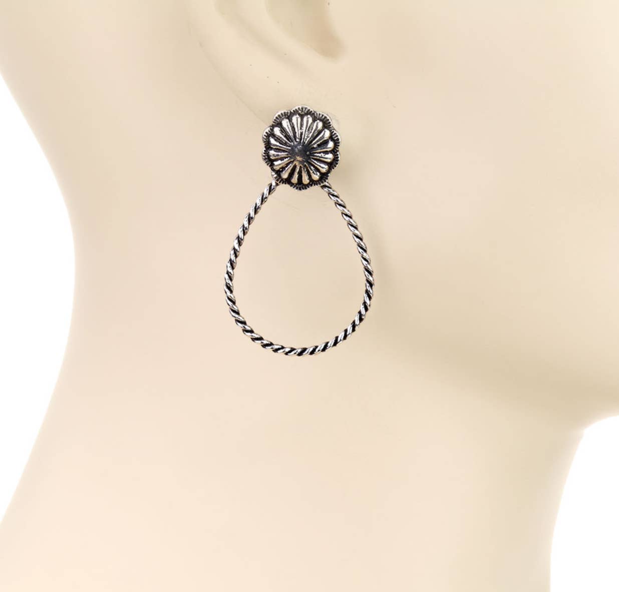 Western Twisted Textured Hoop Concho Dangle Earrings