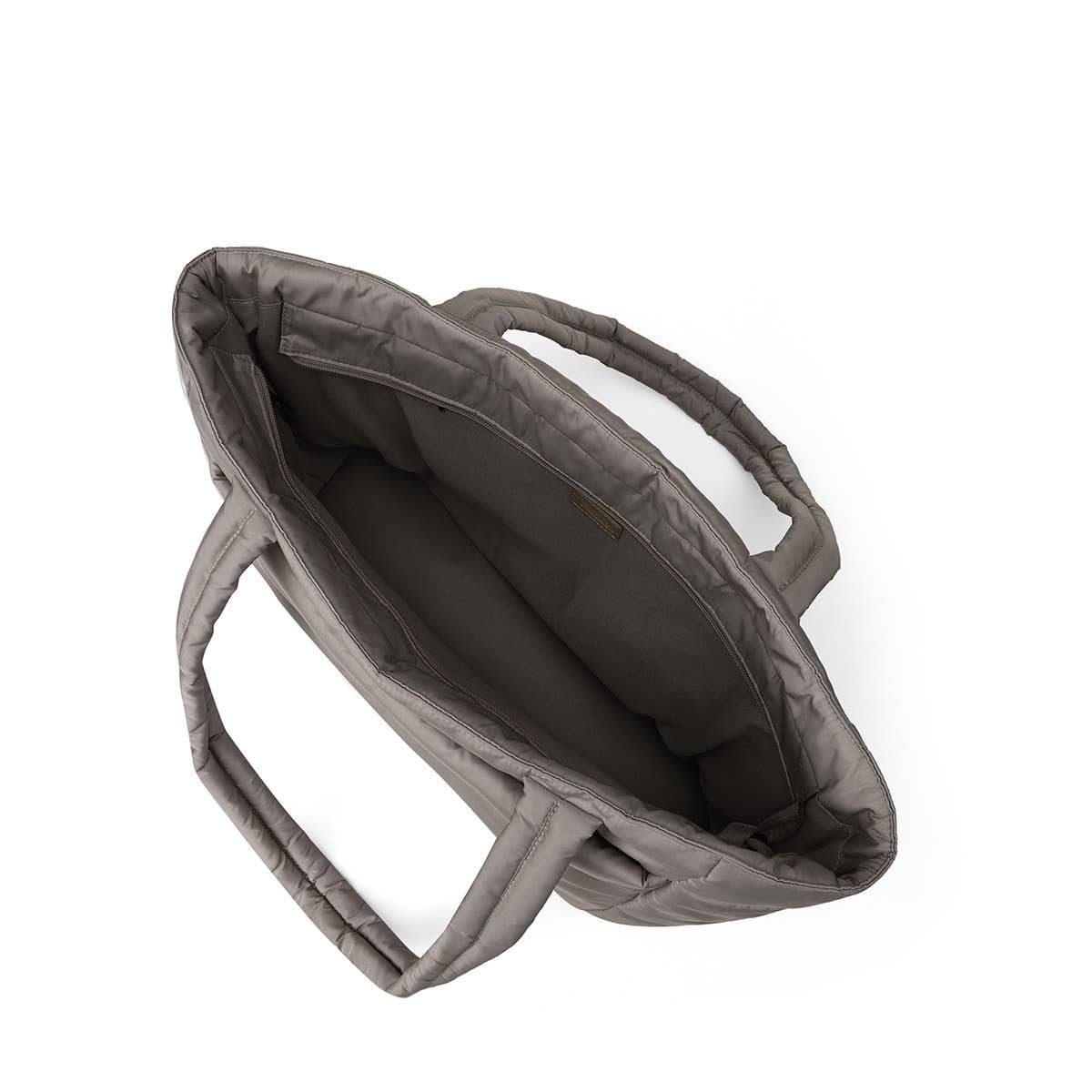 Meet your new travel companion. The Aime Commuter Tote in sophisticated taupe grey effortlessly blends on-trend quilted puffer style with serious functionality — imagine gliding through the airport with this sleek tote secured to your luggage handle, or heading to work with everything organized in its spacious 14.5" x 14.5" x 5" interior.