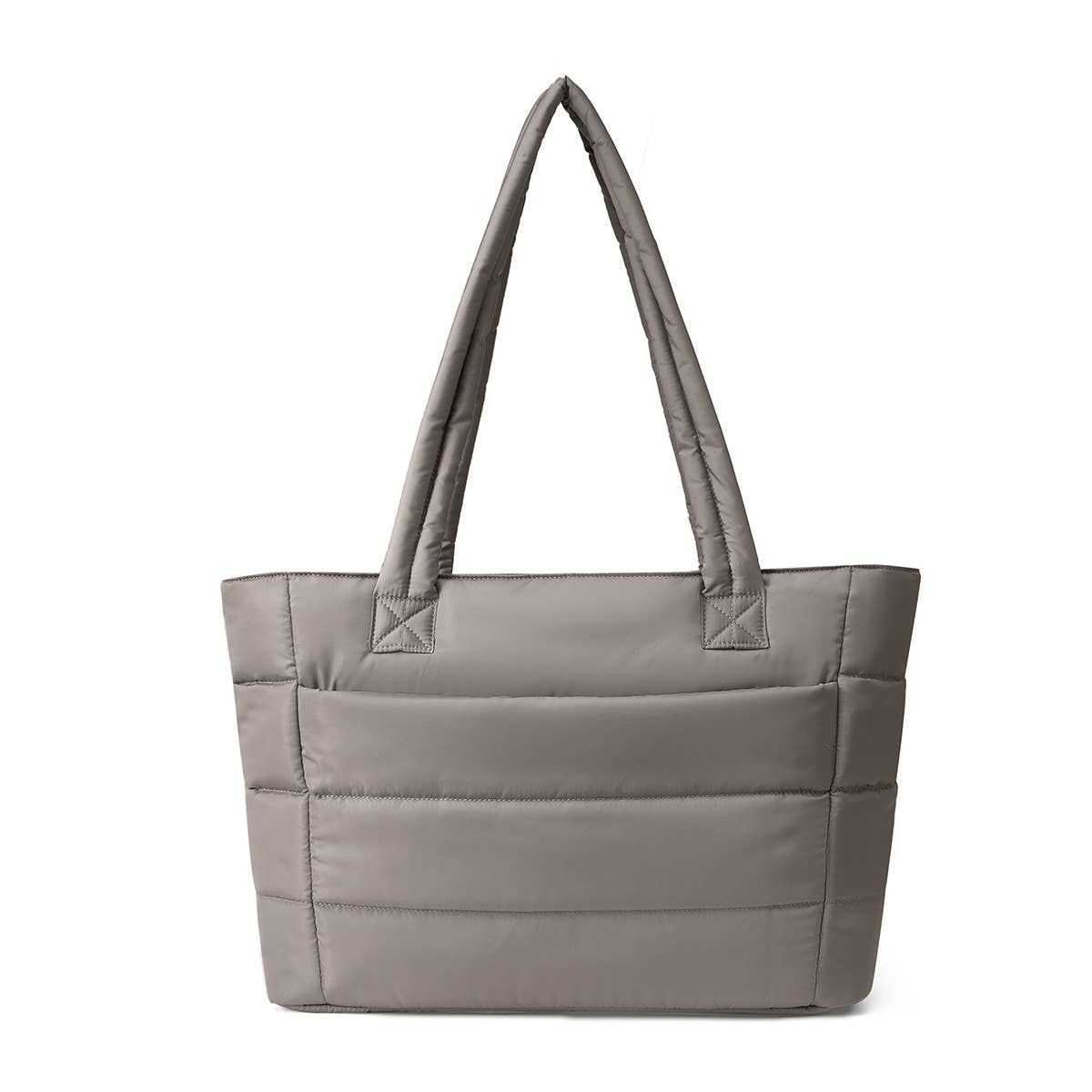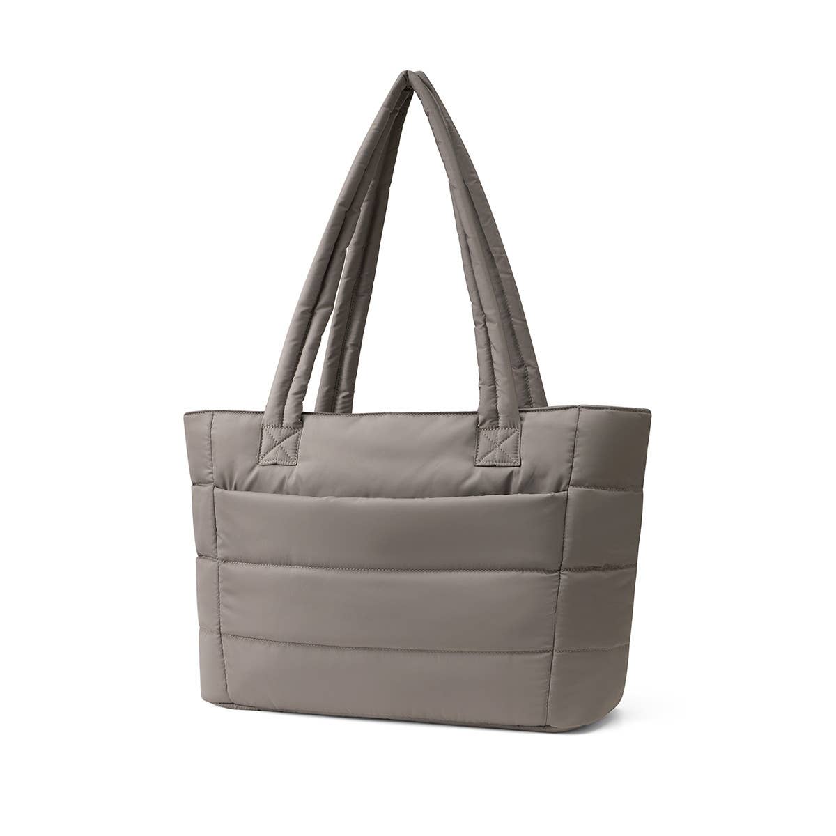 Aime Commuter Tote Quilted Puffer with Luggage Strap Carry Taupe Grey