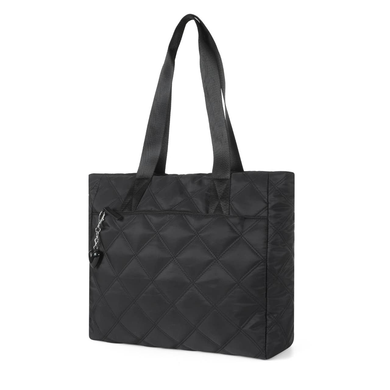 Harper Tote Bag Quilted Puffer with Heart Bag Charm Black