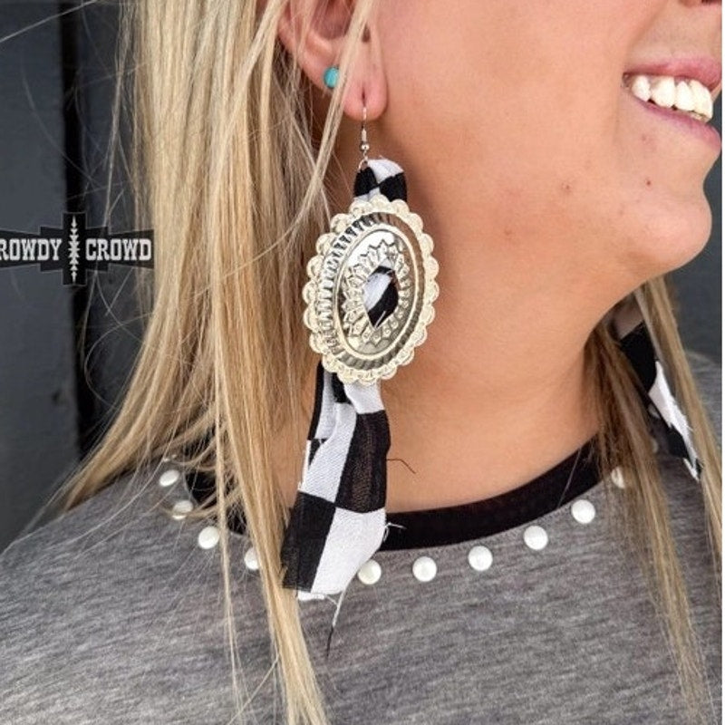 Concho Rodeo Western Cowgirl Earrings Black White Checkered