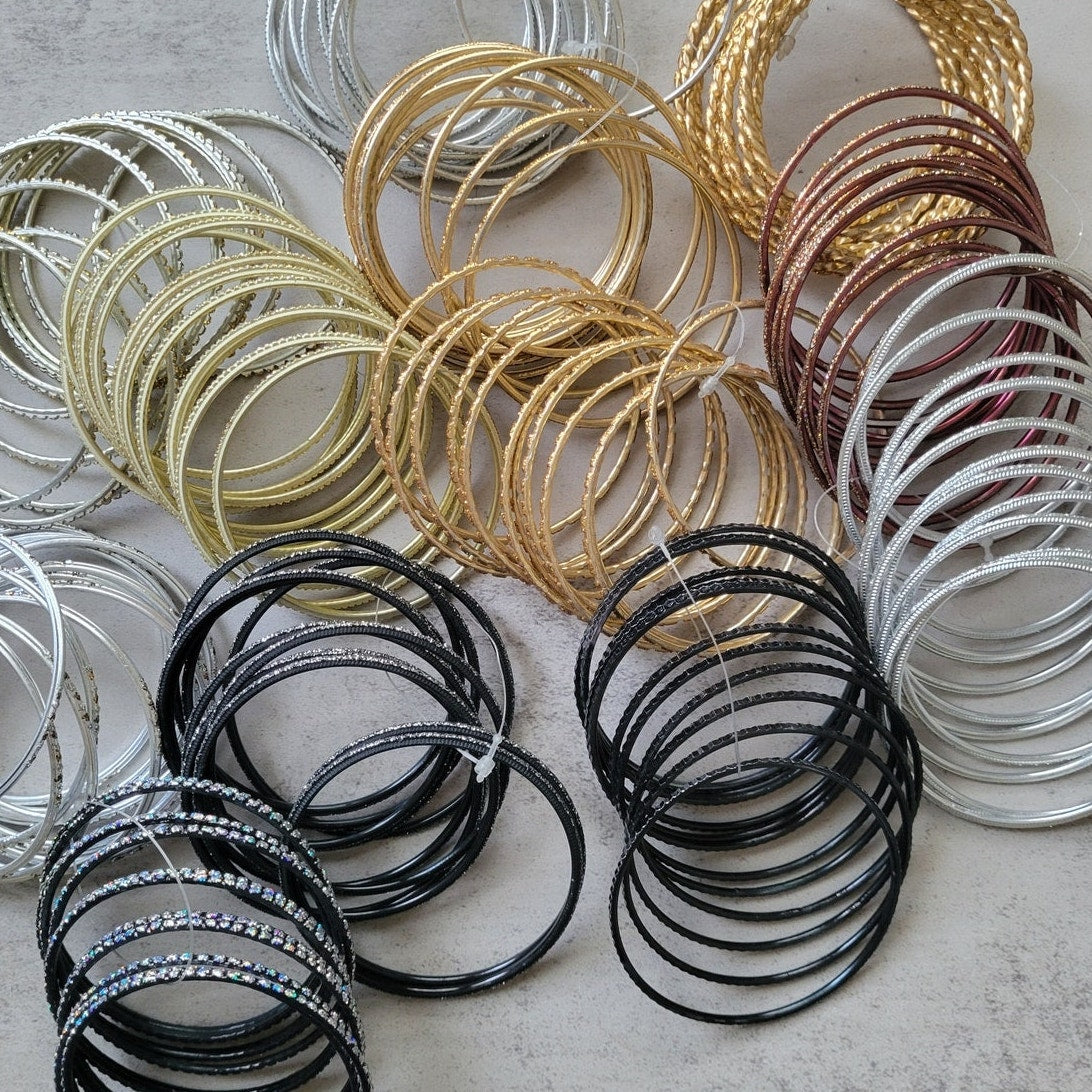 Light Silver Glitter Thin Metal Bangles Metallics Stack of 6