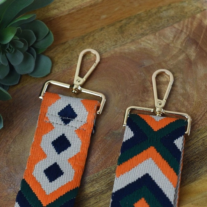 Orange Navy Green Geometric Woven Adjustable Crossbody Bag Purse Guitar Strap