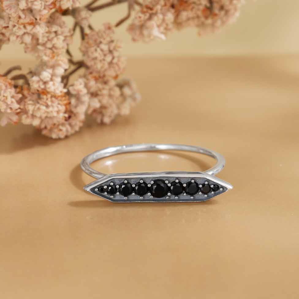 Artisan Sterling Silver Black Crystal Stacking Ring