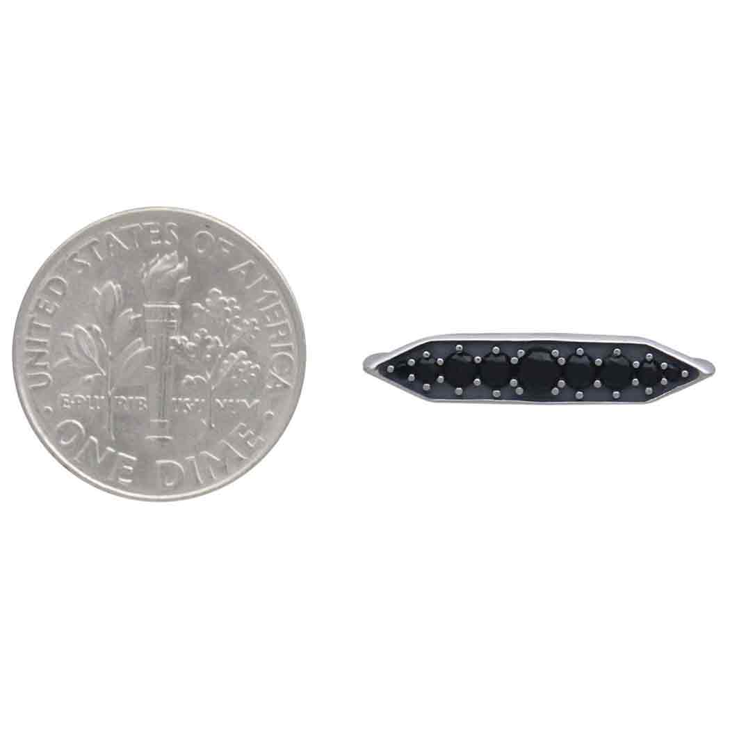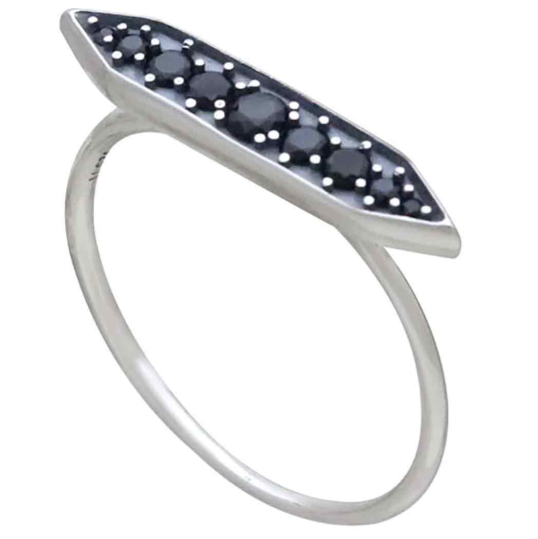 Make a statement when you list this sterling silver black crystal stacking ring in your shop. An embellished ring of nine tapered black crystals run the bar's length to form a surprisingly sexy, sleek, and hyper modern ring. It's simply magical. One's good, stacking three looks gorgeous! ·