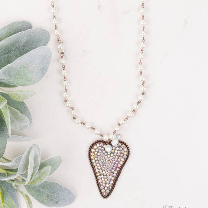 True to Your Heart Beaded Necklace Copper Aurora Borealis Crystals Heart Pendant